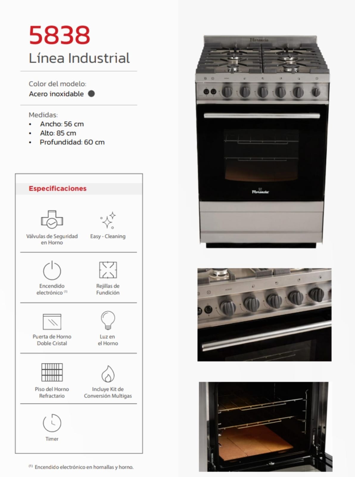 Cocina Florencia Semi-Industrial 56cm 4 Hornallas