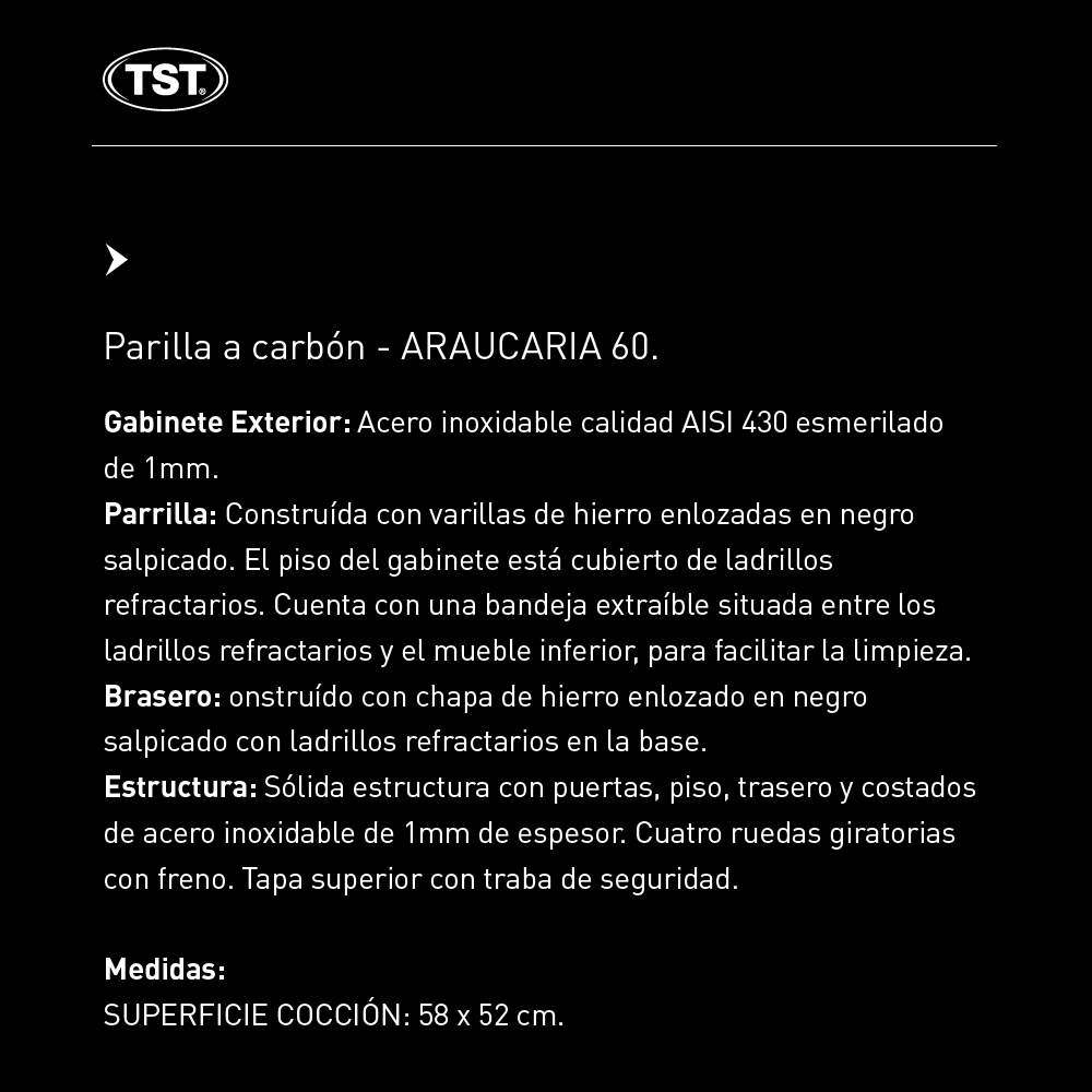 Parrilla TST Araucaria Carbón/Leña 60cm