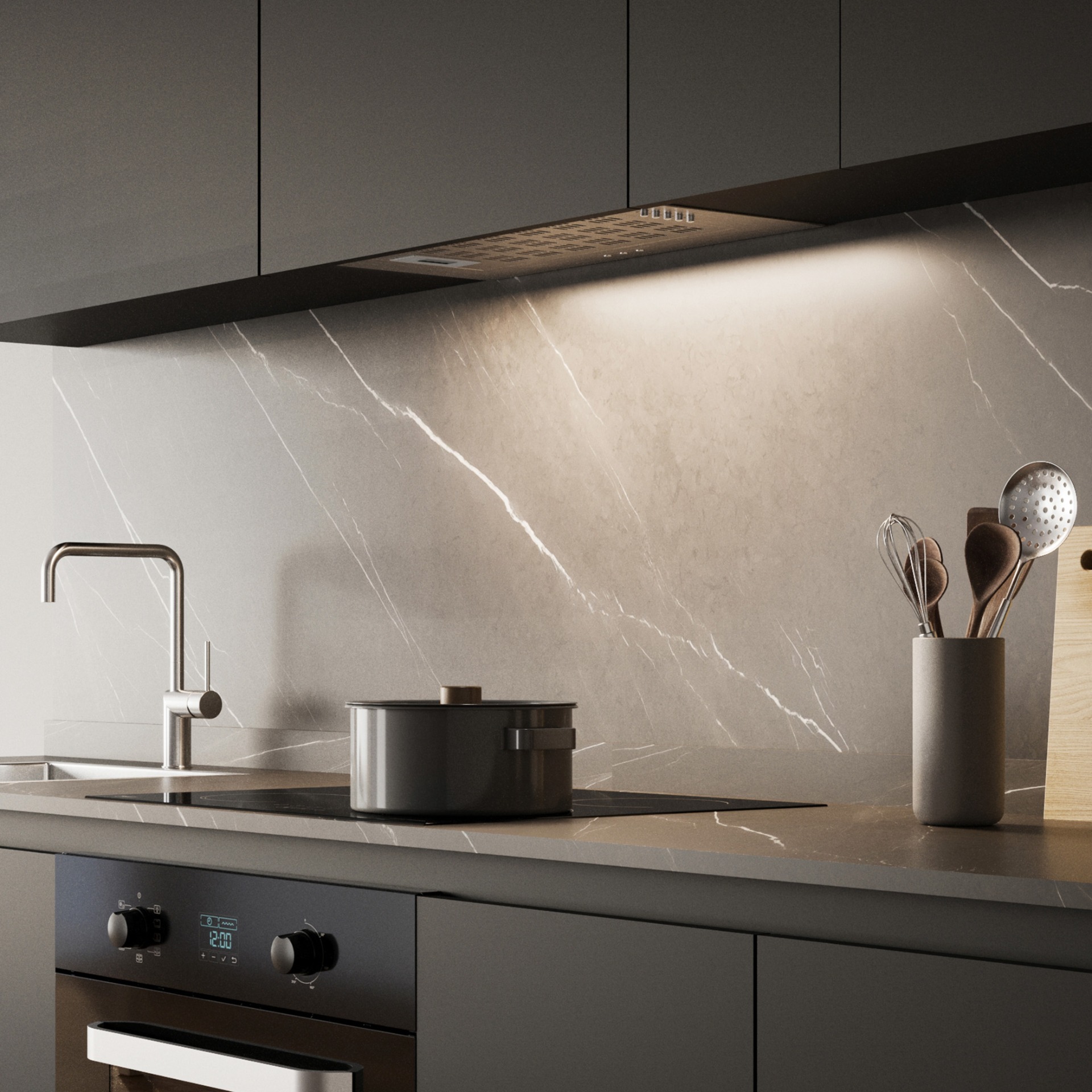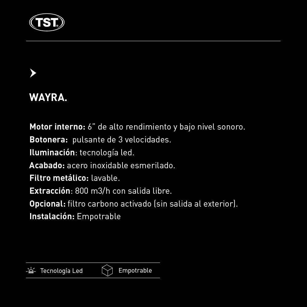 Tipo: Campana Extractora de Pared Empotrable (Opcional Sin Salida Al Exterior mediante filtros de Carbón Activado)